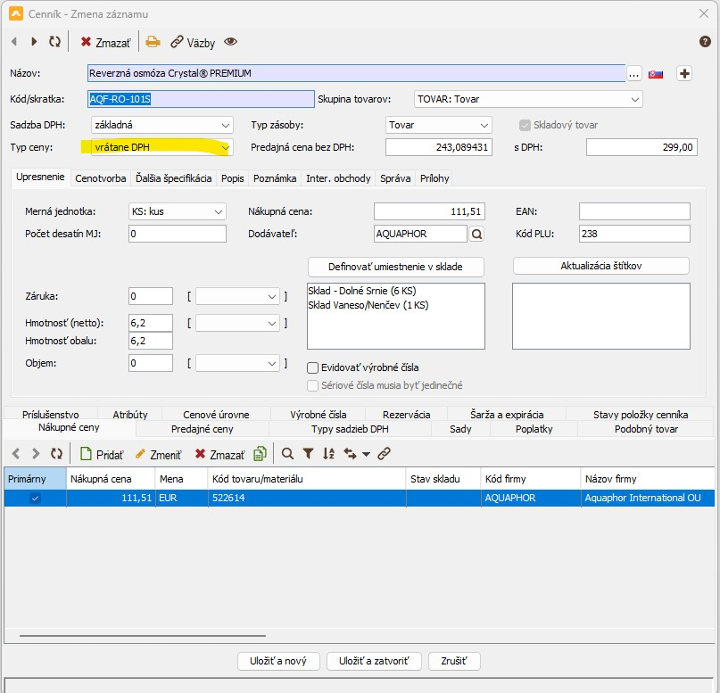Pri prenose z Magento zmenit TYP CENY na "bez DPH".